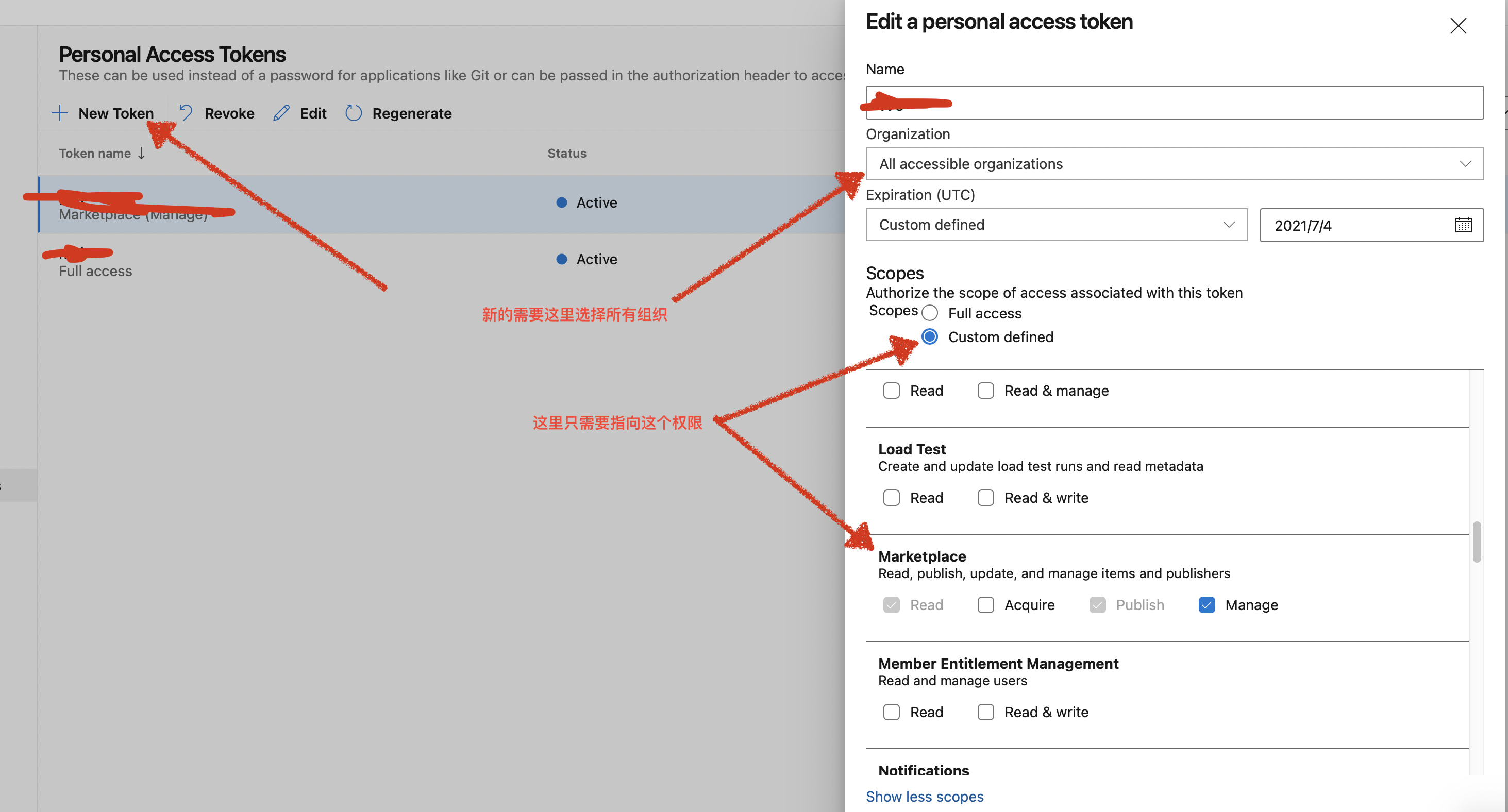 使用 vsce 发布首先需要 一个微软 Azure 账户,然后创建一个 Azure DevOps,然后在组织里创建发布 Token,然后就能使用 vsce 发布插件。